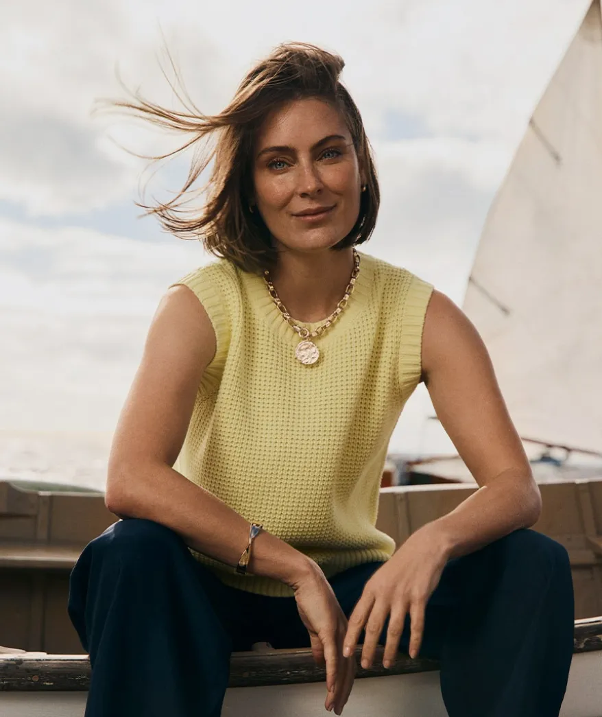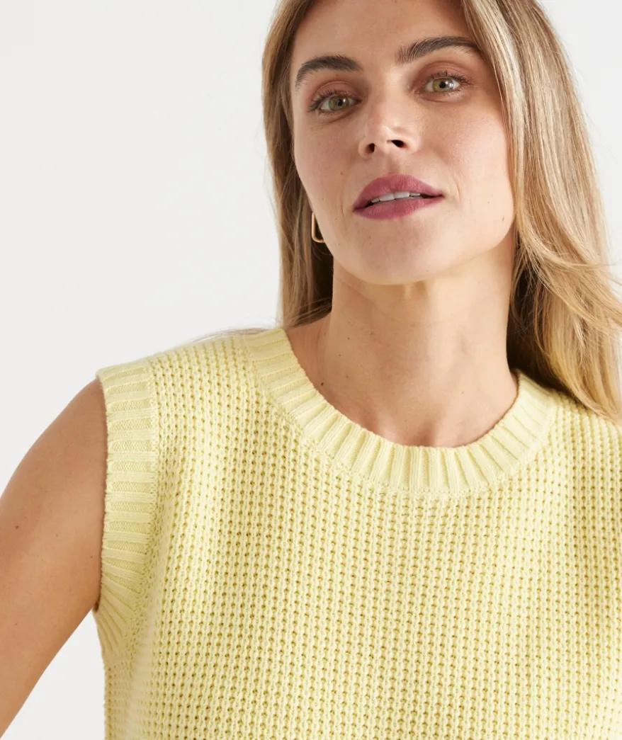 Elevate your layering with our Back Button Tuck Stitch Knit Vest. Crafted from a soft, breathable cotton blend, this sleeveless knit is designed for year-round versatility. The textured tuck stitch adds subtle detail, making it a timeless piece that pairs effortlessly with everything in your wardrobe. A go-to staple for comfort, style and everyday wear.