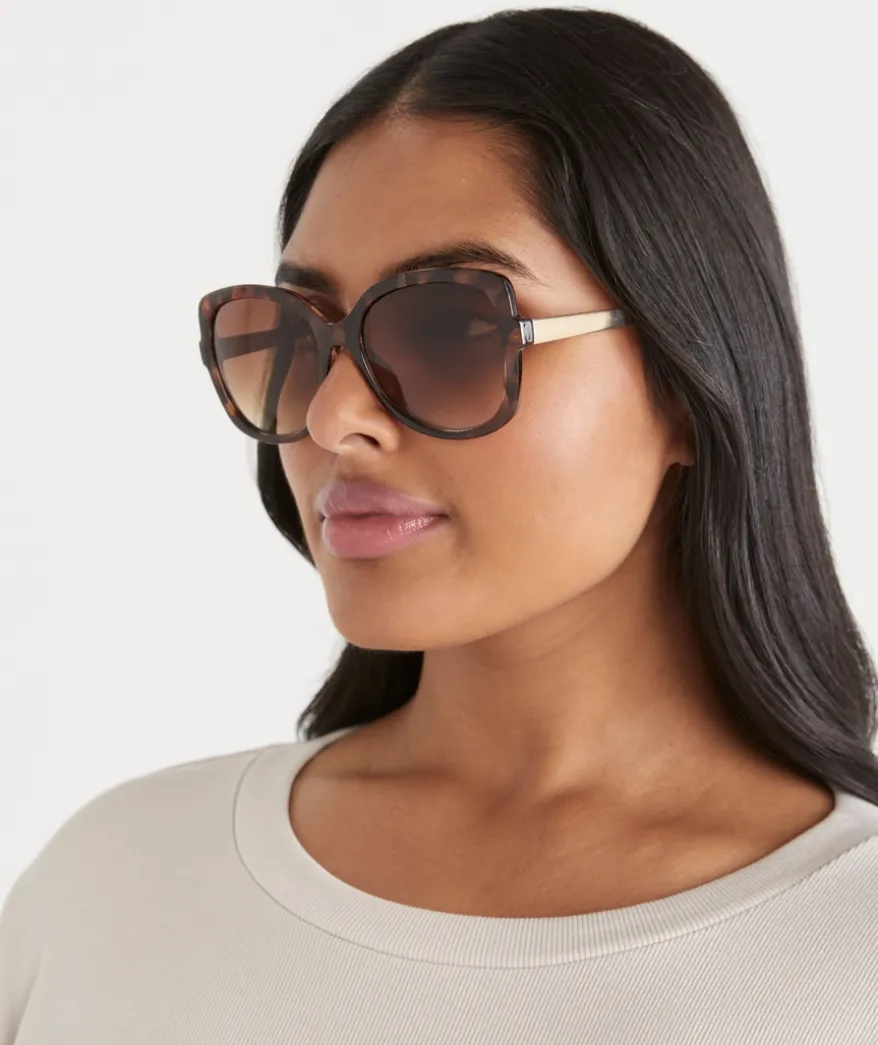 Introducing our Alessandria Dark Tort Oversized Sunglasses in a new Tortoise Shell frame – a perfect blend of style and protection. Featuring a glossy tortoise shell wrap frame with chic temple details, these versatile shades elevate any outfit, from city strolls to beach days. With gradient smoke lenses adding depth and sophistication, the Alessandria Tortoise Sunglasses are a timeless, stylish essential.