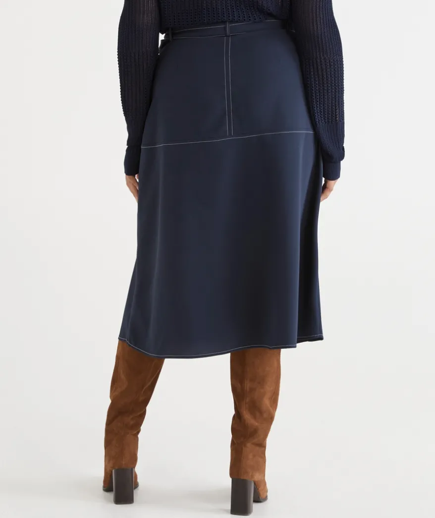 Introducing the Belted A-line Midi Skirt, made from a comfortable polyester blend, offers a stylish and flattering fit. With contrast stitching and a front split that enhance its shape, it’s both functional and fashionable. The adjustable belt allows for a personalised fit, making it a versatile addition to your wardrobe. Perfect for creating effortless everyday looks, this skirt seamlessly combines comfort and style.