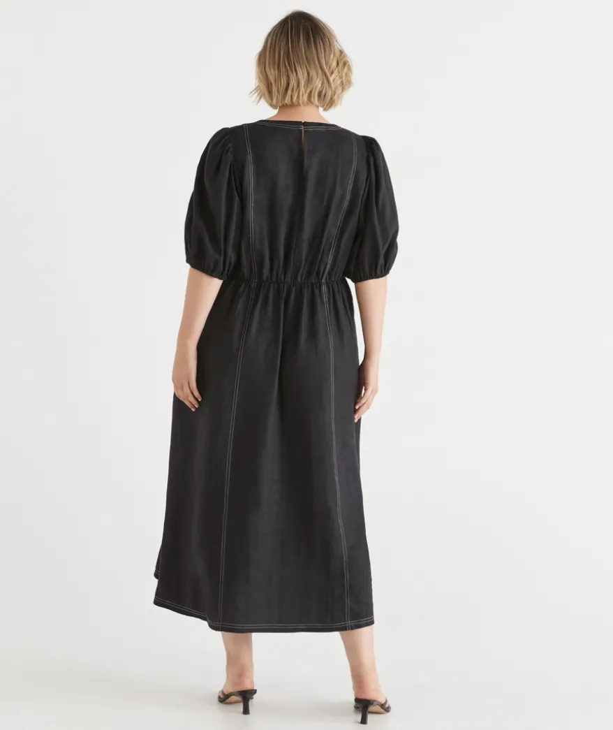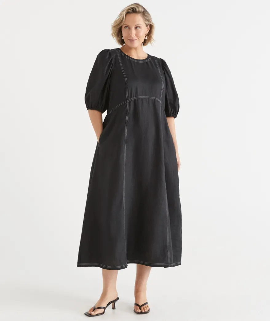 Our Linen Stitch Detail Short Sleeve Midi Dress is crafted from breathable linen and based on a best-selling silhouette. Designed with feminine short sleeves with elasticated openings for all-day comfort, and eye-catching contrast stitch along the front for added detail.